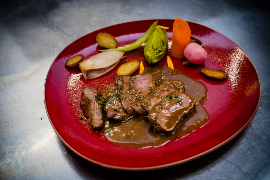 Côté gastronomie, vous dégusterez une cuisine traditionnelle française, appréciée de toutes les générations. Les assiettes sont sublimées par des garnitures colorées et des herbes aromatiques issues de notre jardin. Les desserts sont entièrement faits maison, mêlant grands classiques et créations de notre pâtissier.