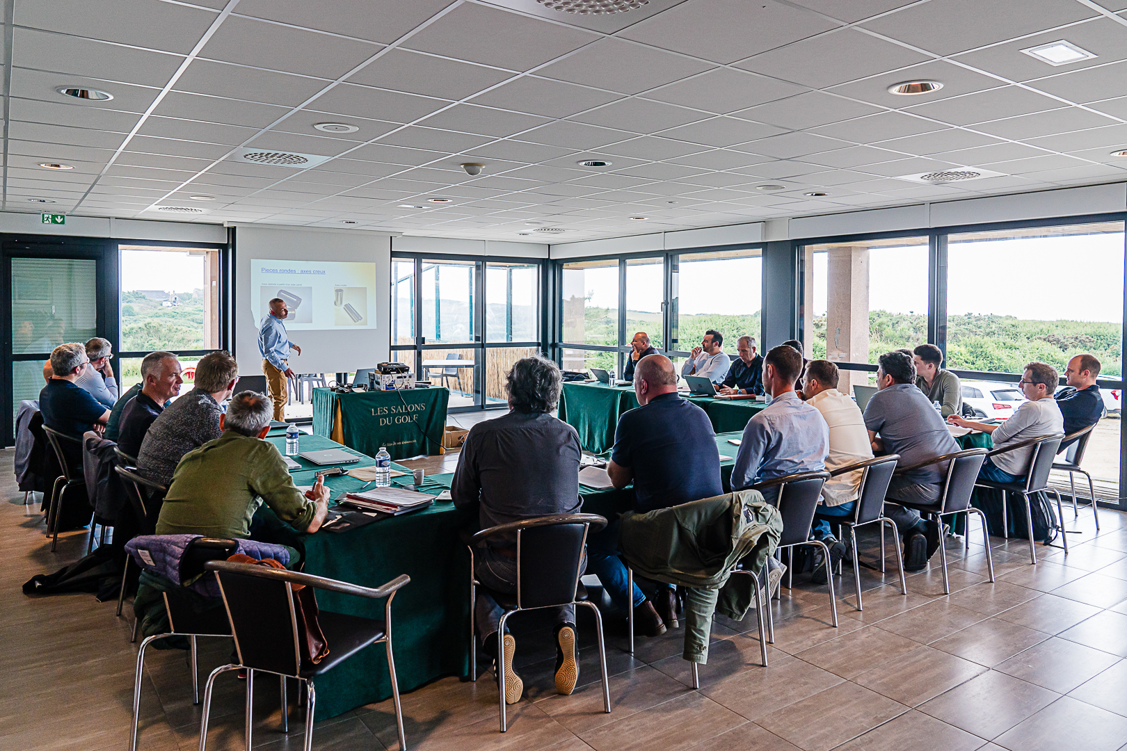 Pour vos réunions de travail, optez pour un cadre chaleureux dans nos salles avec une vue panoramique sur l’océan, l’île de Groix, le terrain de golf et son littoral. Idéalement situé à 10 mn de l’aéroport et à 20 mn de la gare de Lorient.